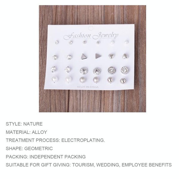 12 Pair Sets Assorted Multiple Stud Earings Jewelry Set With Card For Women And Girls(Silver)