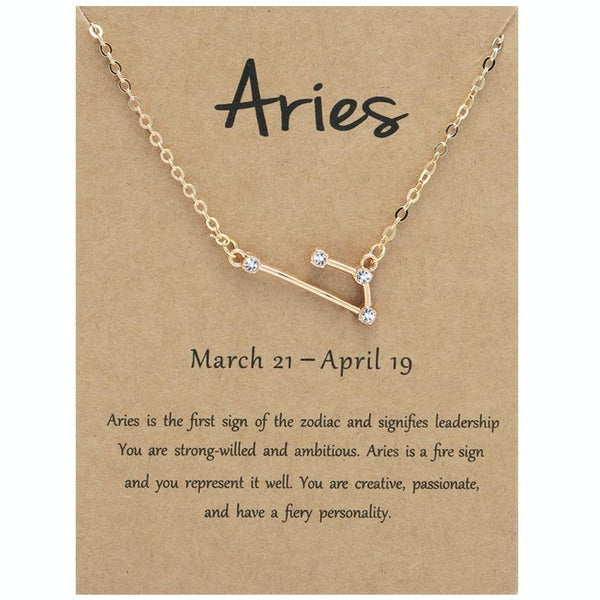 12 Zodiac Signs With Diamonds Necklace Card Rhinestones Collarbone Chain Pendant, Style: Aries Golden