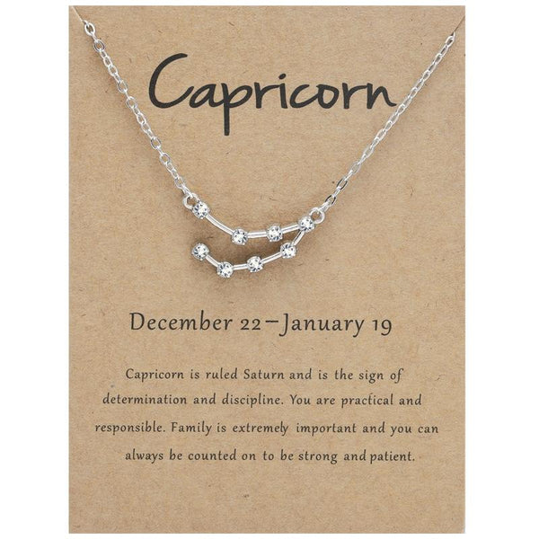 12 Zodiac Signs With Diamonds Necklace Card Rhinestones Collarbone Chain Pendant, Style: Capricorn Silver