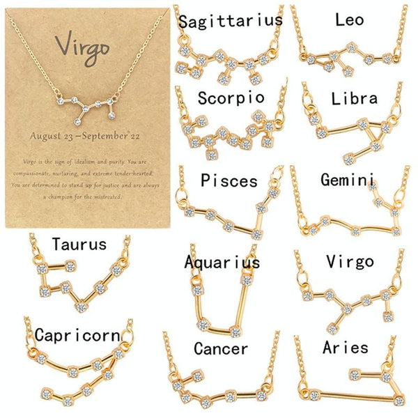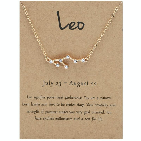 12 Zodiac Signs With Diamonds Necklace Card Rhinestones Collarbone Chain Pendant, Style: Leo Golden