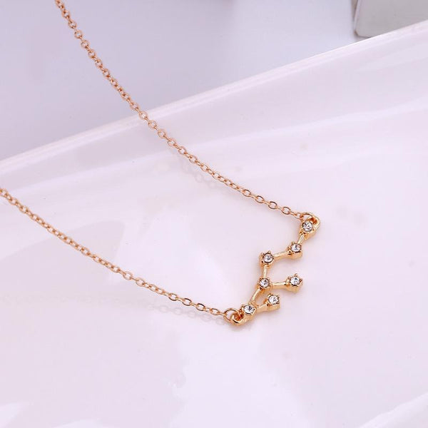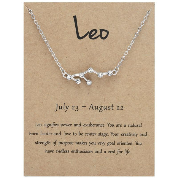12 Zodiac Signs With Diamonds Necklace Card Rhinestones Collarbone Chain Pendant, Style: Leo Silver