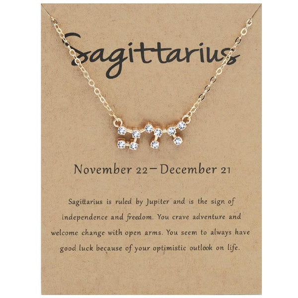12 Zodiac Signs With Diamonds Necklace Card Rhinestones Collarbone Chain Pendant, Style: Sagittarius Golden