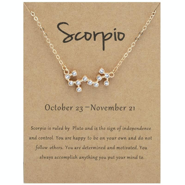12 Zodiac Signs With Diamonds Necklace Card Rhinestones Collarbone Chain Pendant, Style: Scorpio Golden