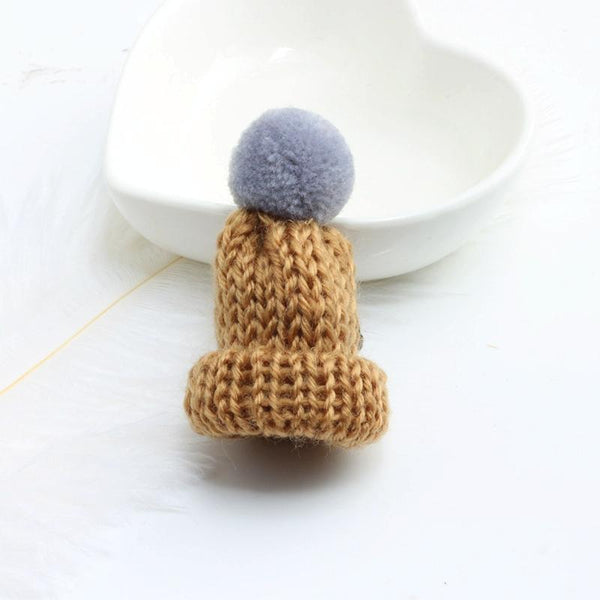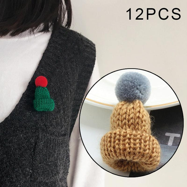 12PCS Cute Mini Knitted Hairball Hat Brooch Sweater Pins Badge(Coffee)
