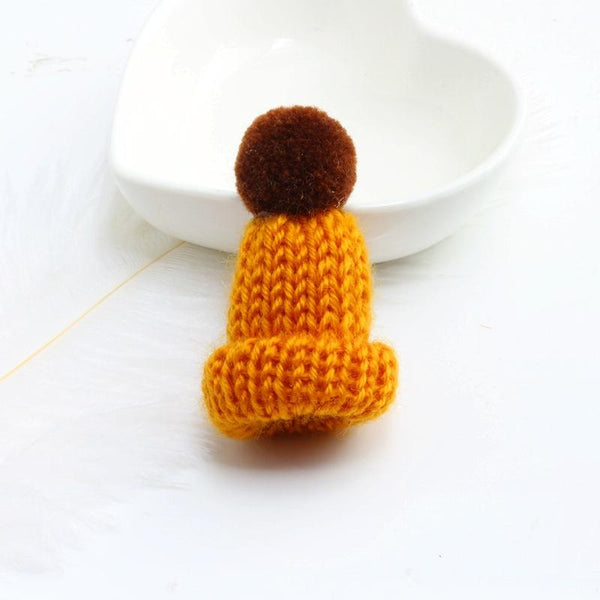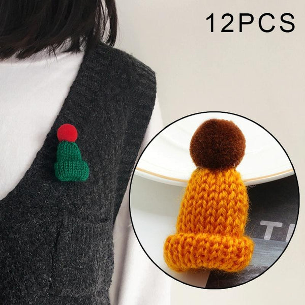 12PCS Cute Mini Knitted Hairball Hat Brooch Sweater Pins Badge(Dark yellow)