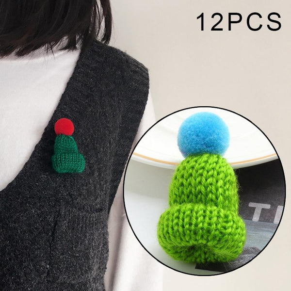 12PCS Cute Mini Knitted Hairball Hat Brooch Sweater Pins Badge(Green)