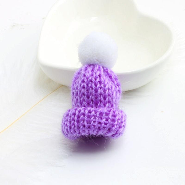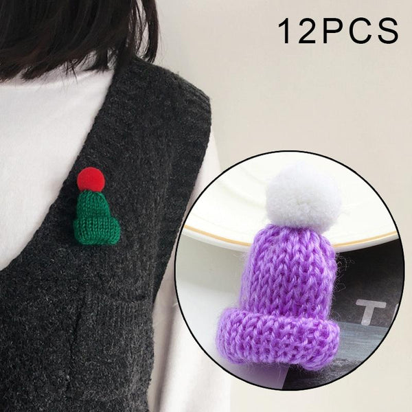 12PCS Cute Mini Knitted Hairball Hat Brooch Sweater Pins Badge(Purple)