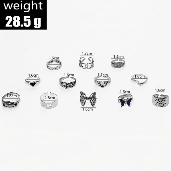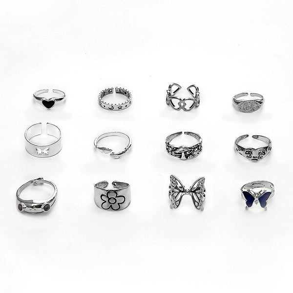 12pcs/set Dazzling Color Gemstone Butterfly Frog Heart Ring(SKU5718)