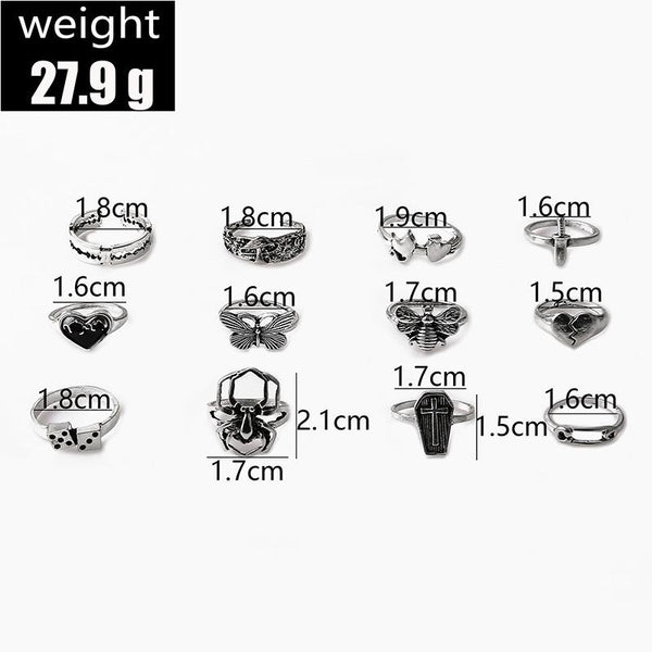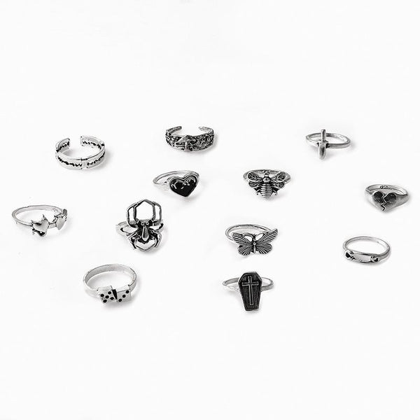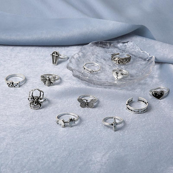12pcs/set Heart Cross Butterfly Mushroom Spider Open Ring(SKU6015)