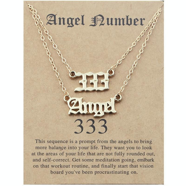 2 In 1 Angel Lucky Numbers Layered Necklace Set Women Collarbone Chain Jewelry, Style: Angel+3 Gold
