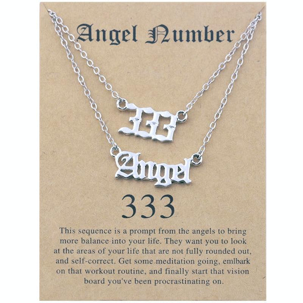 2 In 1 Angel Lucky Numbers Layered Necklace Set Women Collarbone Chain Jewelry, Style: Angel+3 Silver