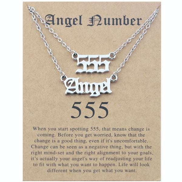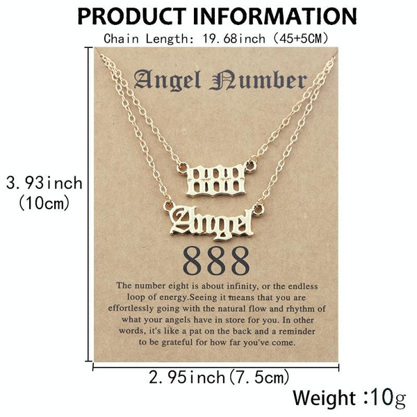 2 In 1 Angel Lucky Numbers Layered Necklace Set Women Collarbone Chain Jewelry, Style: Angel+5 Silver
