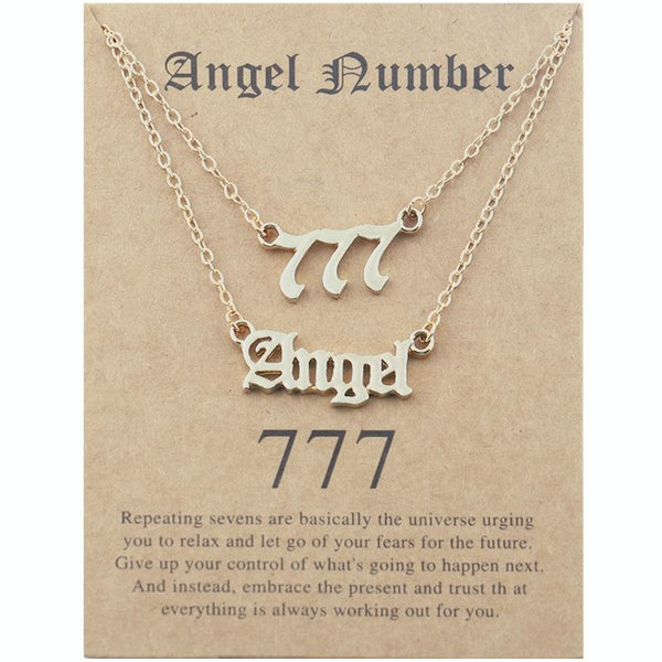 2 In 1 Angel Lucky Numbers Layered Necklace Set Women Collarbone Chain Jewelry, Style: Angel+7 Gold