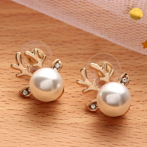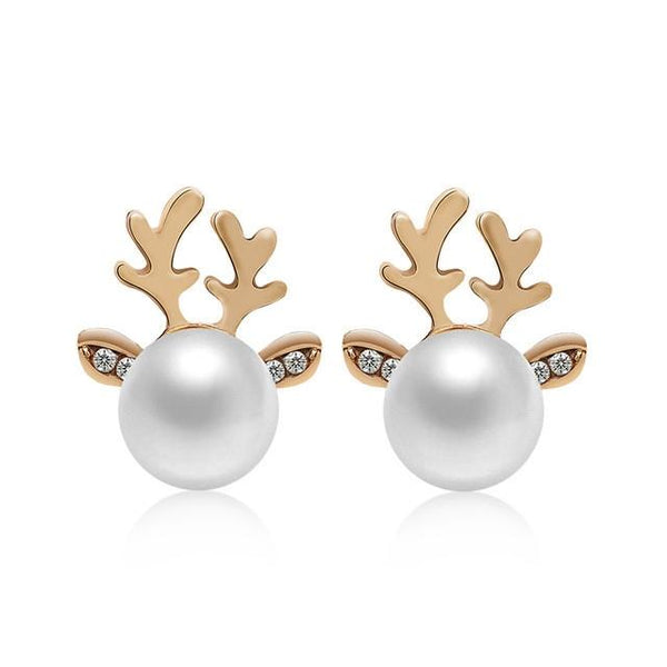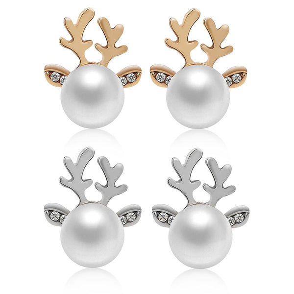 2 Pairs Micro-set Pearl Antler Earrings Deer HeadEarrings Elk Ear Studs(Gold)