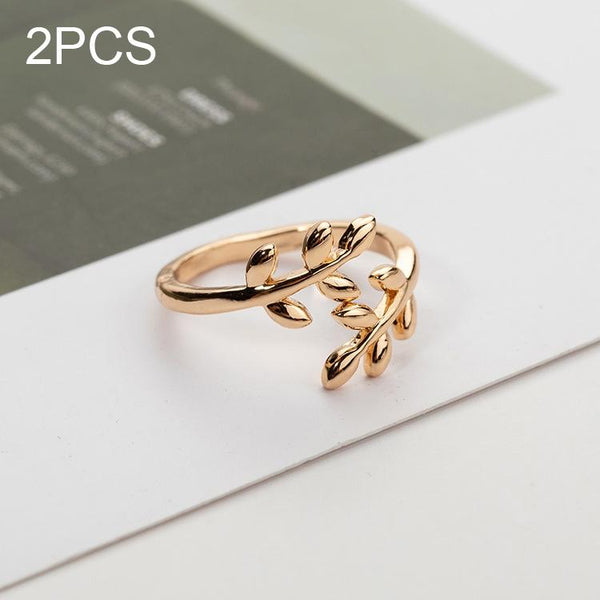 2 PCS Charms Tolive Tree Branch Leaves Adjustable Open Ring for Women(Gold)