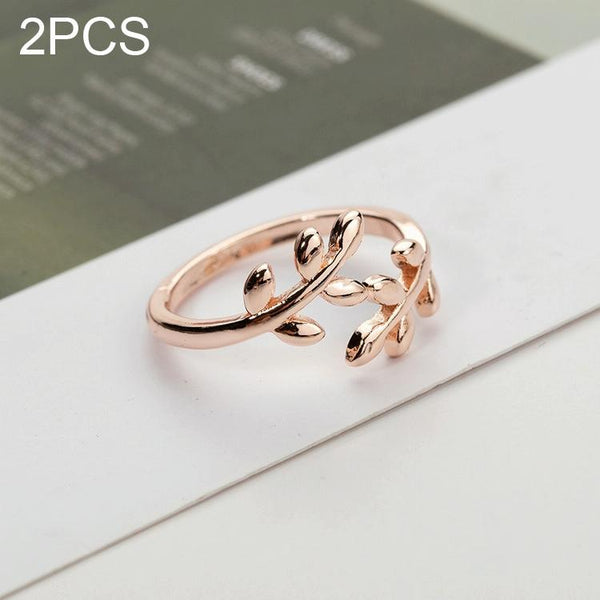 2 PCS Charms Tolive Tree Branch Leaves Adjustable Open Ring for Women(Rose Gold)