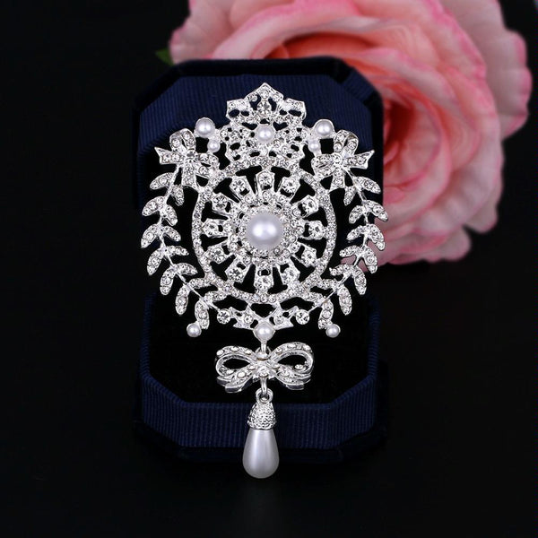 2 PCS Crown Brooch Pearl Butterfly Fringed Brooch(Silver)