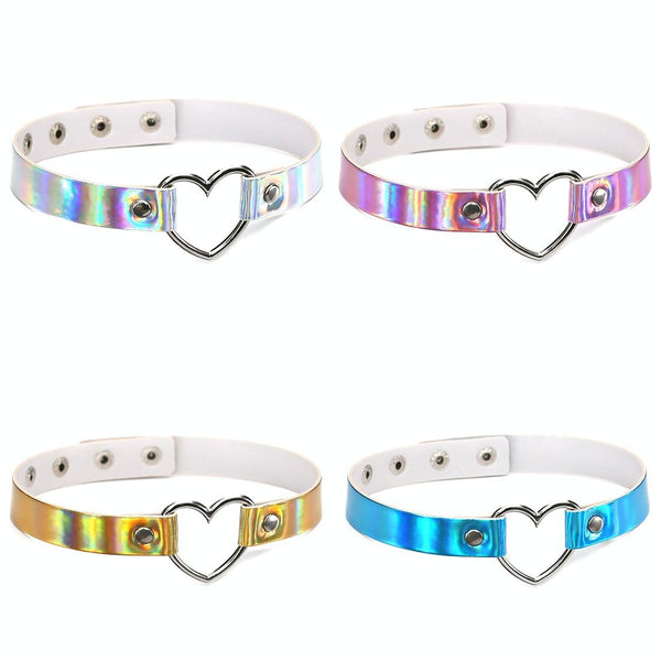2 PCS European and American Harajuku Laser Heart Shape Collar Glowing Choker Necklace, Random Color Delivery