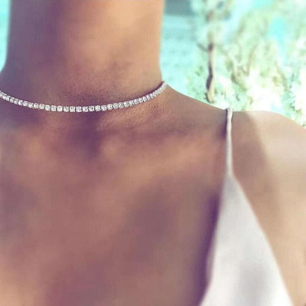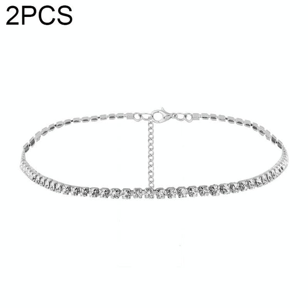 2 PCS Fashion Jewelry Accessories Luxury Rhinestone Choker Necklace for Women Temperament Collar Necklace(Silver)
