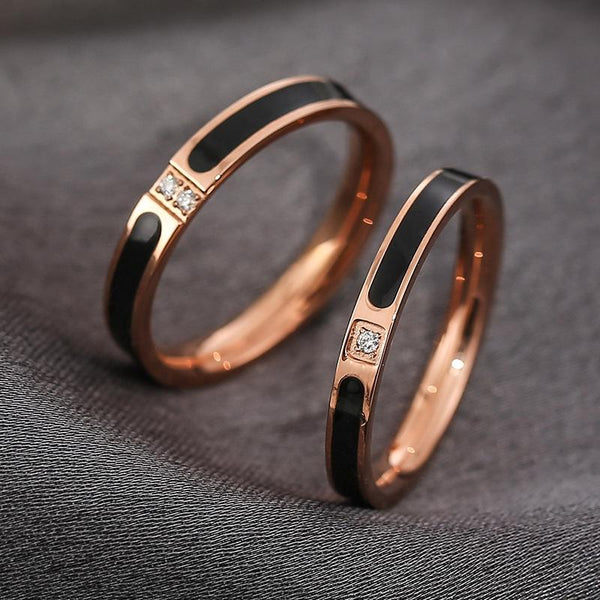 2 PCS Fashion Two Diamond-Studded Titanium Steel Couple Rings For Couple, Size: US Size 6(Rose Gold)