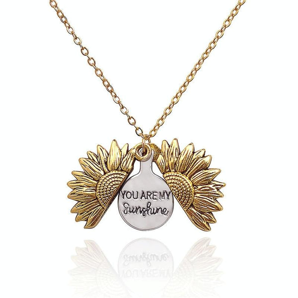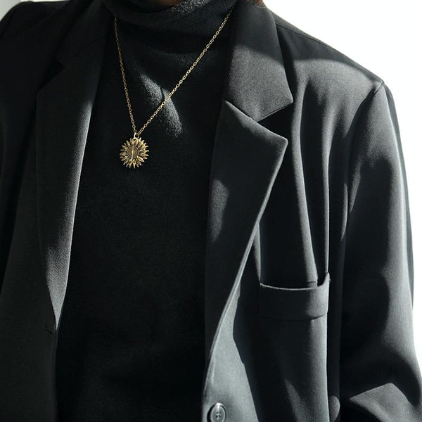 2 PCS Hip Hop Sunflower Titanium Steel Necklace For Men And Women(Gold)