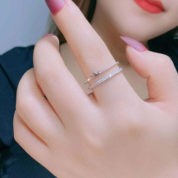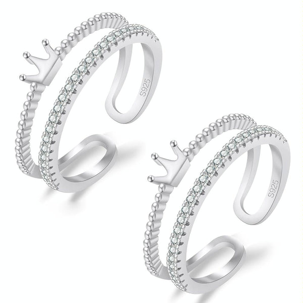 2 PCS J330 Crown Double Layer Open Adjustable Ladies Ring(White Gold)