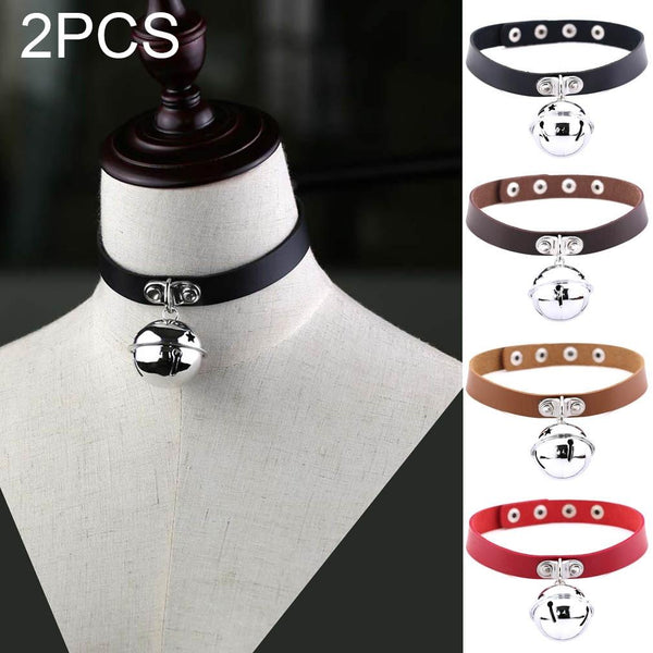 2 PCS Japanese Punk Style Rock Leather Collar Bell Pendant Female Clavicle Neck Necklace, Random Color Delivery