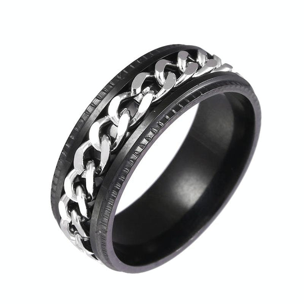 2 PCS Men Stainless Steel Embossed Turnable Chain Rings, Color: Black Steel Color(9)