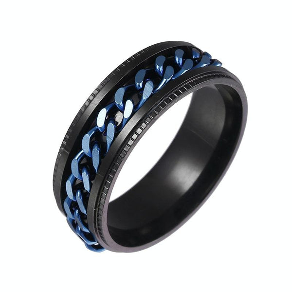 2 PCS Men Stainless Steel Embossed Turnable Chain Rings, Color: Dark Blue(11)