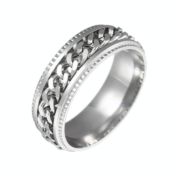 2 PCS Men Stainless Steel Embossed Turnable Chain Rings, Color: Steel Color(7)