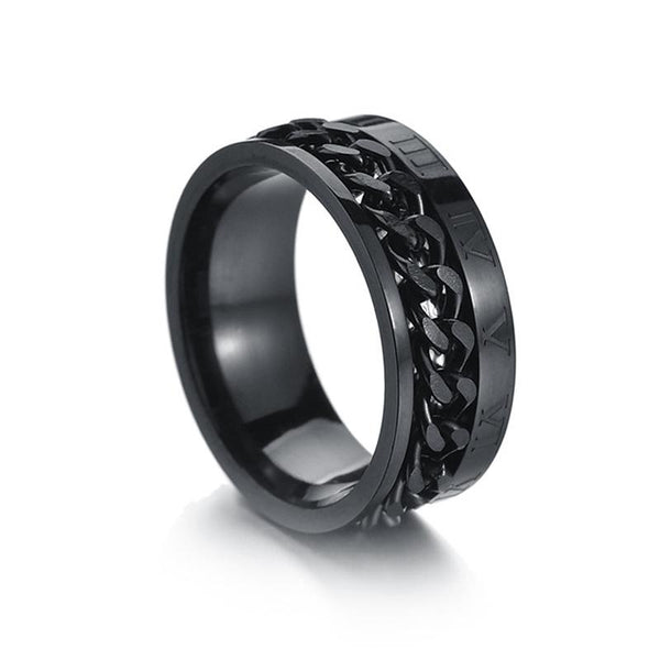 2 PCS Roman Numerals Turnable Chain Titanium Steel Ring, Color: black(11)