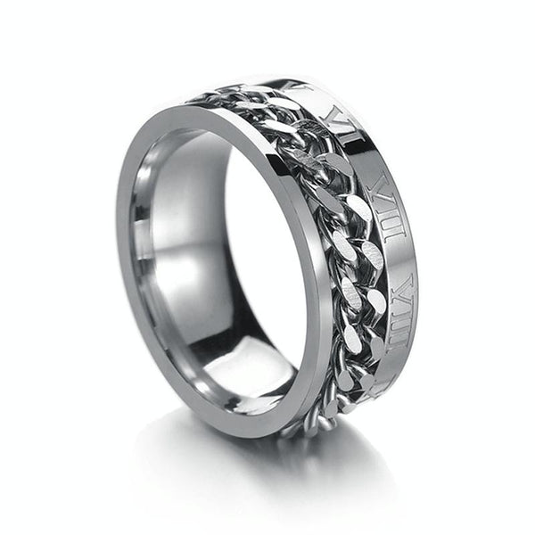 2 PCS Roman Numerals Turnable Chain Titanium Steel Ring, Color: Steel Color(6)