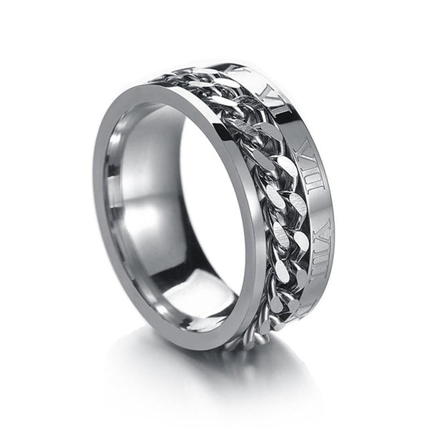 2 PCS Roman Numerals Turnable Chain Titanium Steel Ring, Color: Steel Color(9)