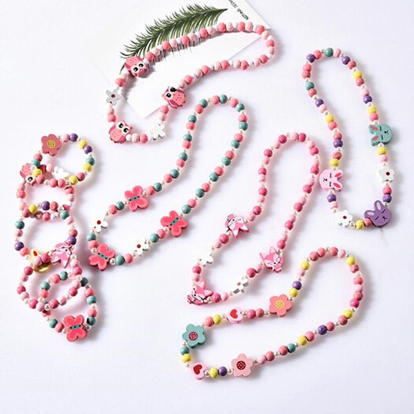 2 PCS/Set Lovely Cartoon Wood Jewelry Beads Necklace Baby Kids Princess Animals Necklace(Dolphin)