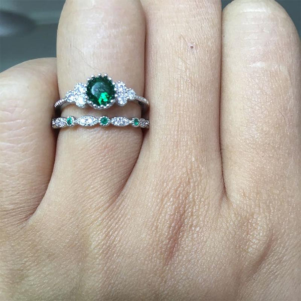 2 PCS/Set Women Fashion Zircon Gemstone Ring 5(Lake Blue)
