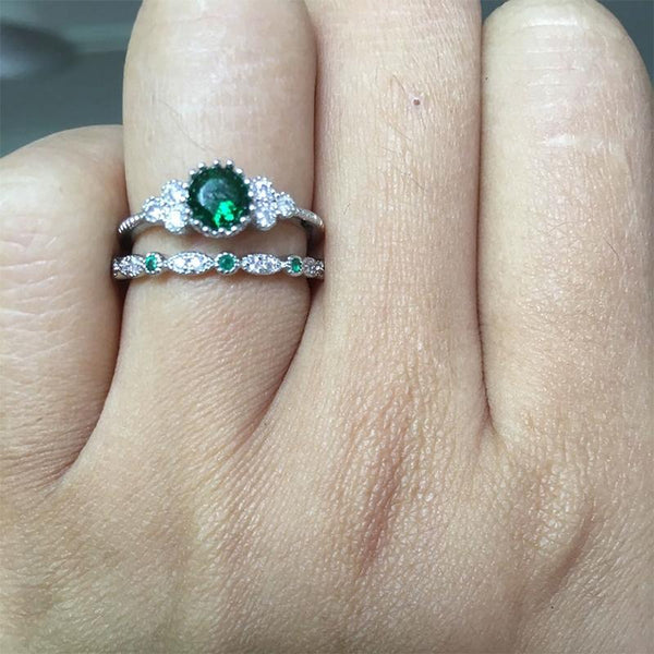 2 PCS/Set Women Fashion Zircon Gemstone Ring 8(Lake Blue)