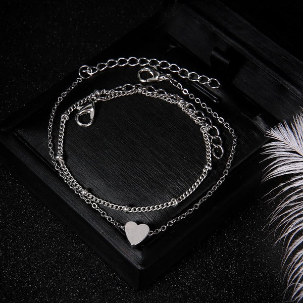 2 Sets Women Minimalist Small Love sharp Link Chain Bracelets(silver)