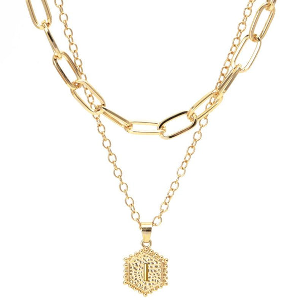 26 Alphabet Double Layer Necklace Hexagonal Letter Pendant Layered Collarbone Chain, Style: I