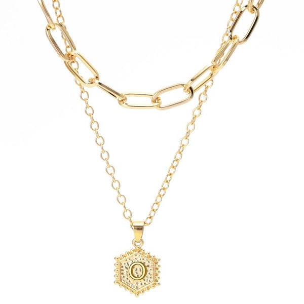 26 Alphabet Double Layer Necklace Hexagonal Letter Pendant Layered Collarbone Chain, Style: O