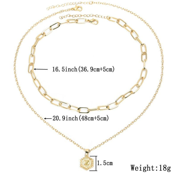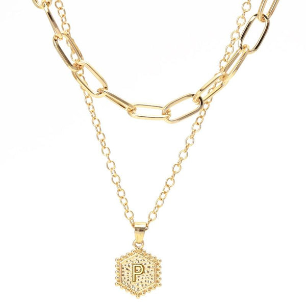 26 Alphabet Double Layer Necklace Hexagonal Letter Pendant Layered Collarbone Chain, Style: P