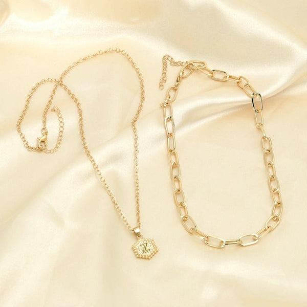 26 Alphabet Double Layer Necklace Hexagonal Letter Pendant Layered Collarbone Chain, Style: V