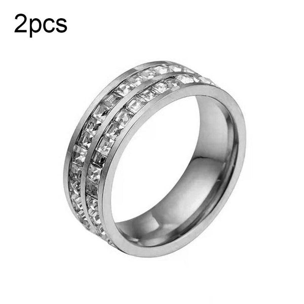 2pcs Girls Simple Titanium Steel Diamond Ring, Size: US Size 9(Double Row Silver)