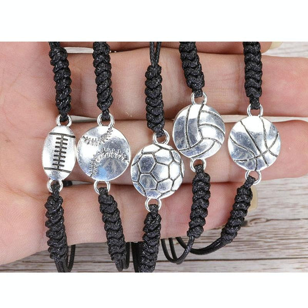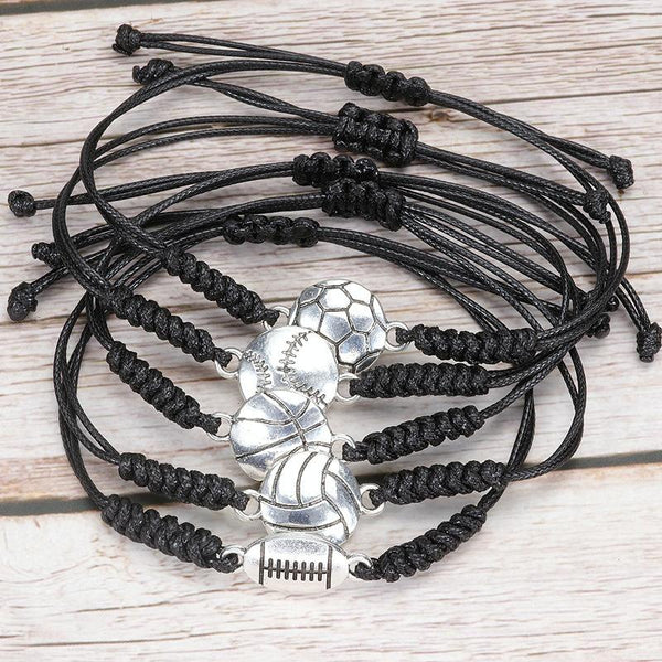 2pcs Hand-Woven Adjustable Alloy Baseball Football Basketball Volleyball Bracelet(1)