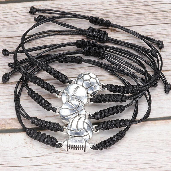 2pcs Hand-Woven Adjustable Alloy Baseball Football Basketball Volleyball Bracelet(6)