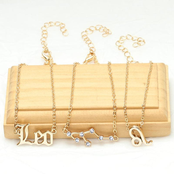 3 In 1 12 Zodiac Signs Necklace Set Retro Alphabet Symbols With Diamonds Jewelry Set, Style: Aquarius Golden