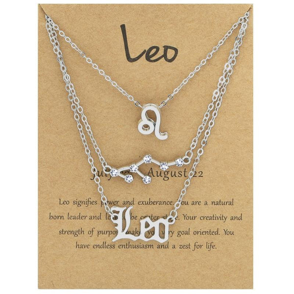 3 In 1 12 Zodiac Signs Necklace Set Retro Alphabet Symbols With Diamonds Jewelry Set, Style: Leo Silver