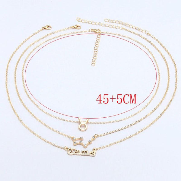 3 In 1 12 Zodiac Signs Necklace Set Retro Alphabet Symbols With Diamonds Jewelry Set, Style: Scorpion Silver