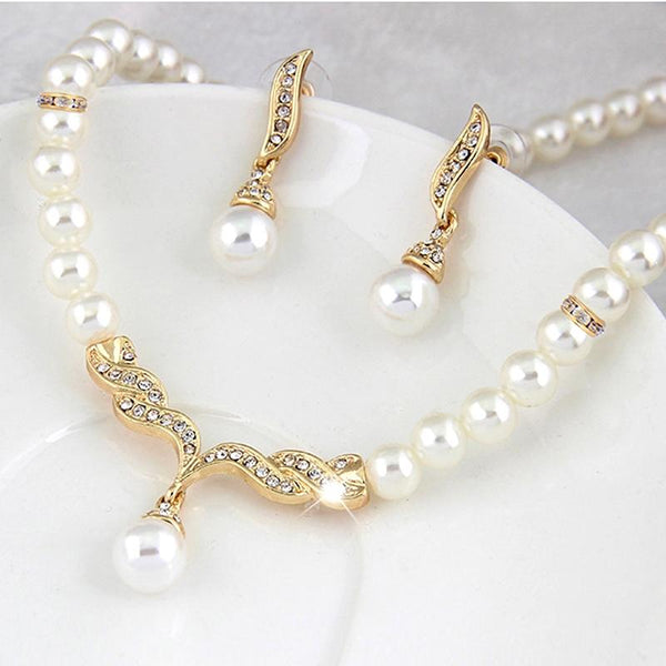 3 in 1 Bridal Accessories Lady Classic Fashion Bead Earring Necklace Jewelry Set
