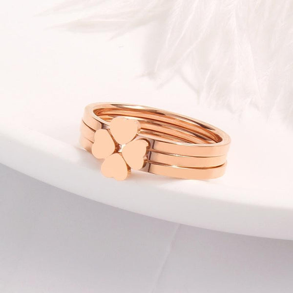 3 In 1 Titanium Steel Peach Heart Combination Four-Leaf Clover Couple Ring, Size: US Size 5(Rose Gold)