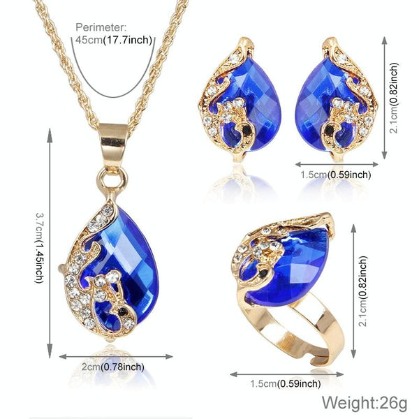 3 in 1 Women Beautiful Peacock Crystal-like Necklace Ring Earrings Jewelry Set